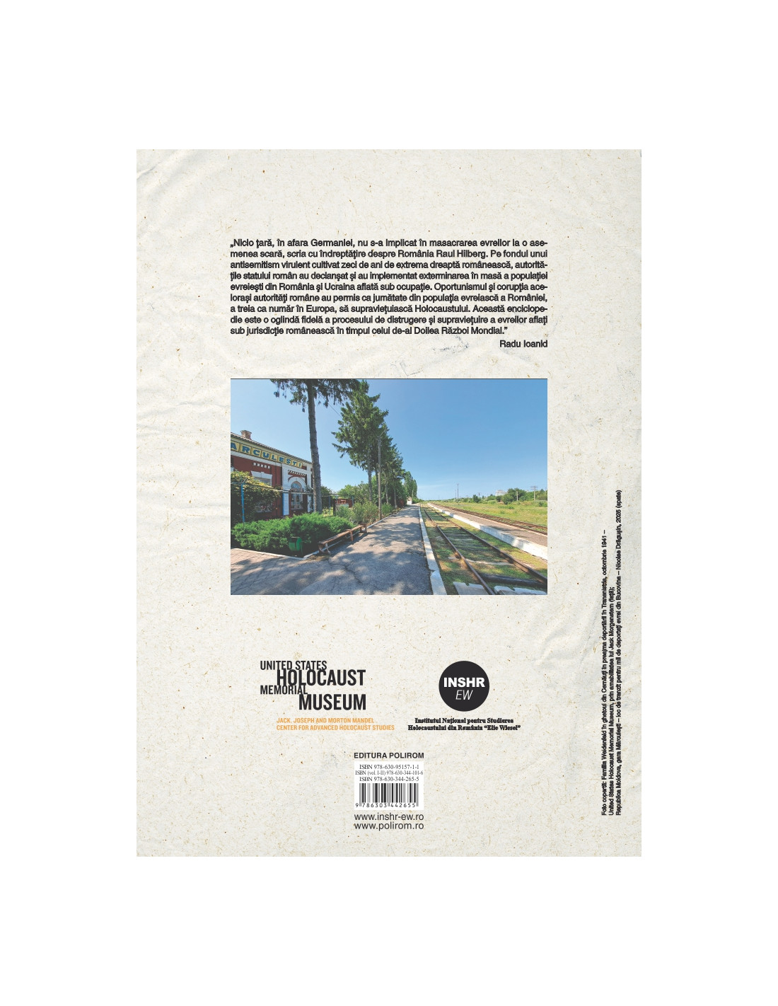„Nicio țară, în afara Germaniei, nu s-a implicat în masacrarea evreilor la o asemenea scară, scria cu îndreptățire despre România Raul Hilberg. Pe fondul unui antisemitism virulent cultivat zeci de ani de extrema dreaptă românească, autoritățile statului român au declanșat și au implementat exterminarea în masă a populației evreiești din România și Ucraina aflată sub ocupație. Oportunismul și corupția acelorași autorități române au permis ca jumătate din populația evreiască a României, a treia ca număr în Europa, să supraviețuiască Holocaustului. Această enciclopedie este o oglindă fidelă a procesului de distrugere și supraviețuire a evreilor aflați sub jurisdicție românească în timpul celui de-al Doilea Război Mondial.” (Radu Ioanid)