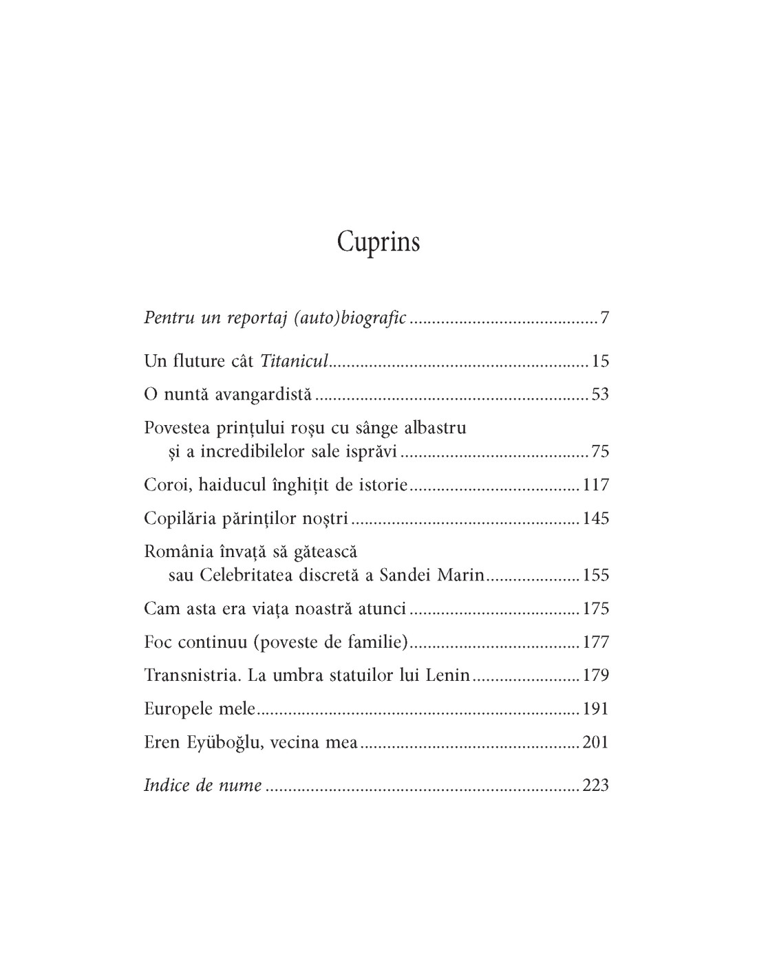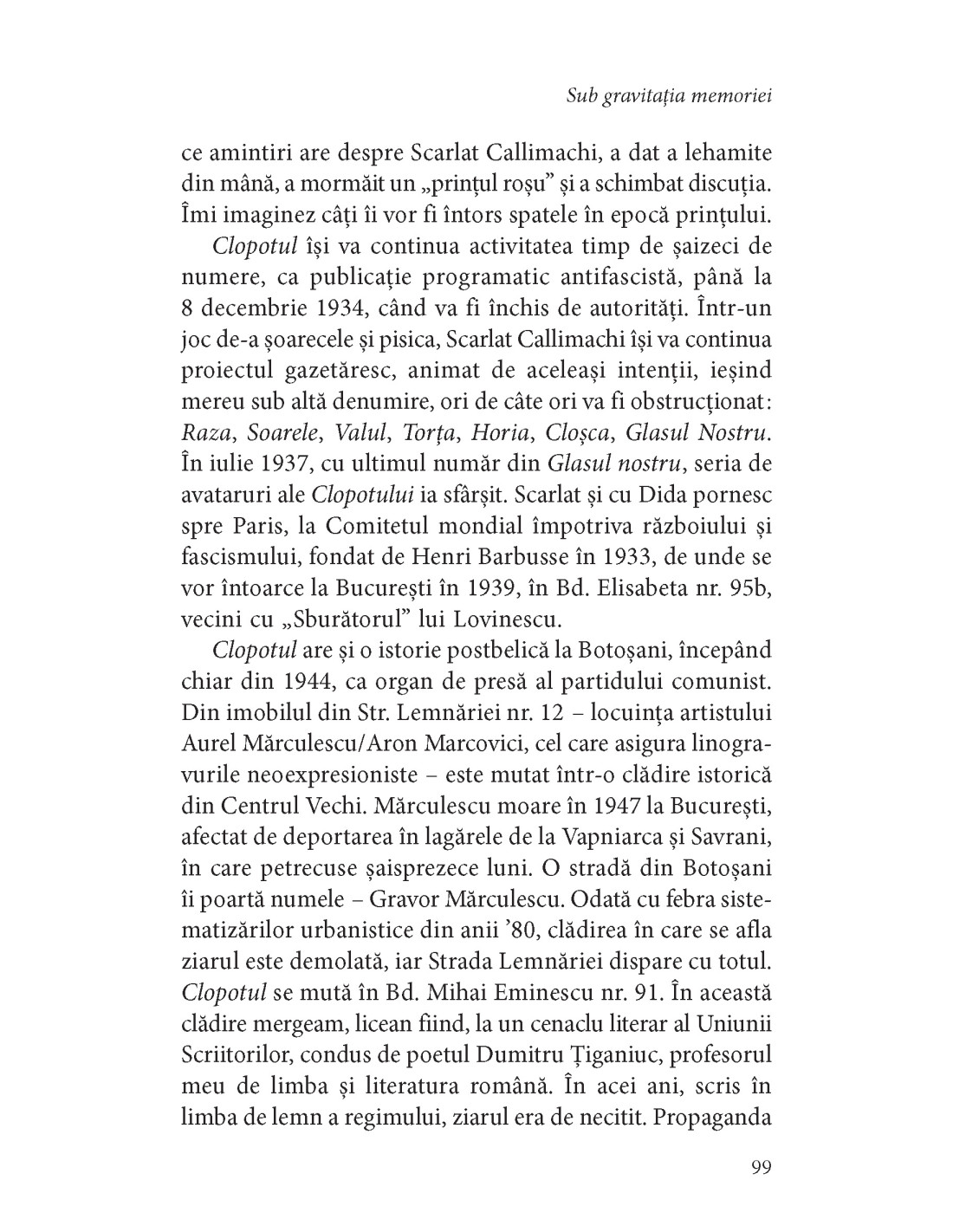 Din fiecare frază a cărții emană plăcerea autorului de a povesti. Pentru el, lumea pare a fi făcută doar pentru a fi povestită, e singura ei rațiune de a exista. Dacă nu s-ar povesti, n-ar fi. Liniile narative ale textelor sale aglutinează tot ce prind în cale: de la evenimente istorice sau de familie la mărturii personale, de la detalii de arhivă la observații directe sau ale contemporanilor, de la evocări literare la extrase de presă. Textele din volum sunt un hibrid de proză autobiografică, reportaj, istorie literară, studii culturale și eseu, pe un ton relaxat și adesea jucăuș, în care scrupulozitatea analizei sau observației lasă loc meditației, umorului și poeziei.