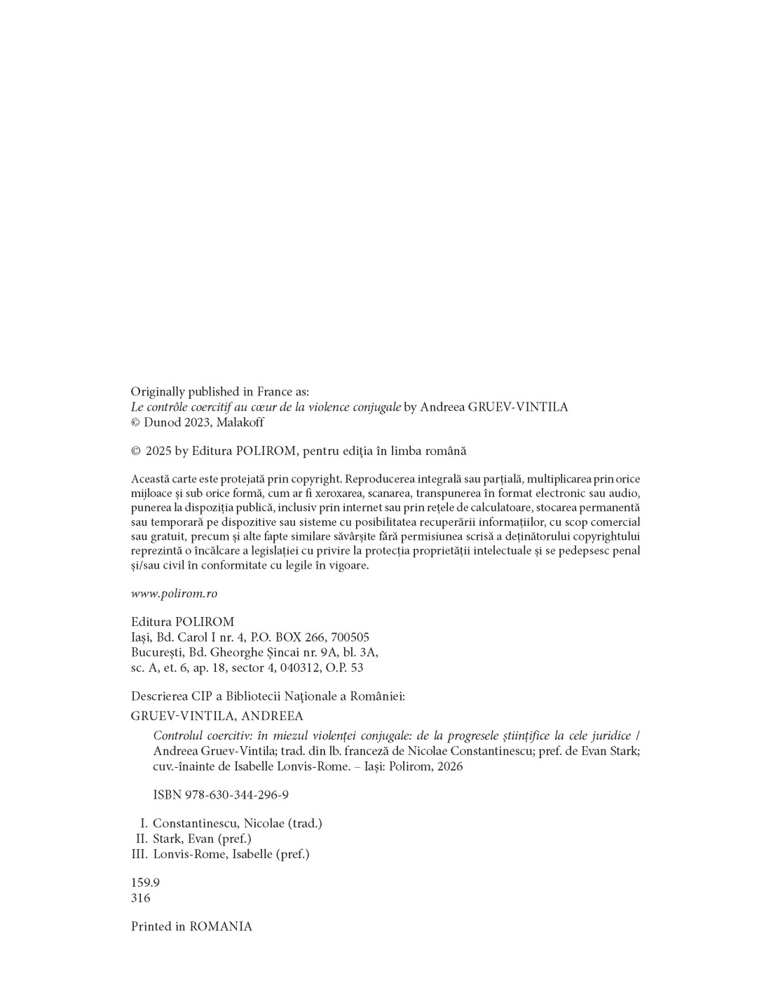 Controlul coercitiv. În miezul violenţei conjugale răspunde la aceste întrebări, precum şi la multe altele, arătând că violenţa domestică nu este o chestiune de patologie personală sau de conflict conjugal/parental, ci o formă de captivitate şi violenţă socială.