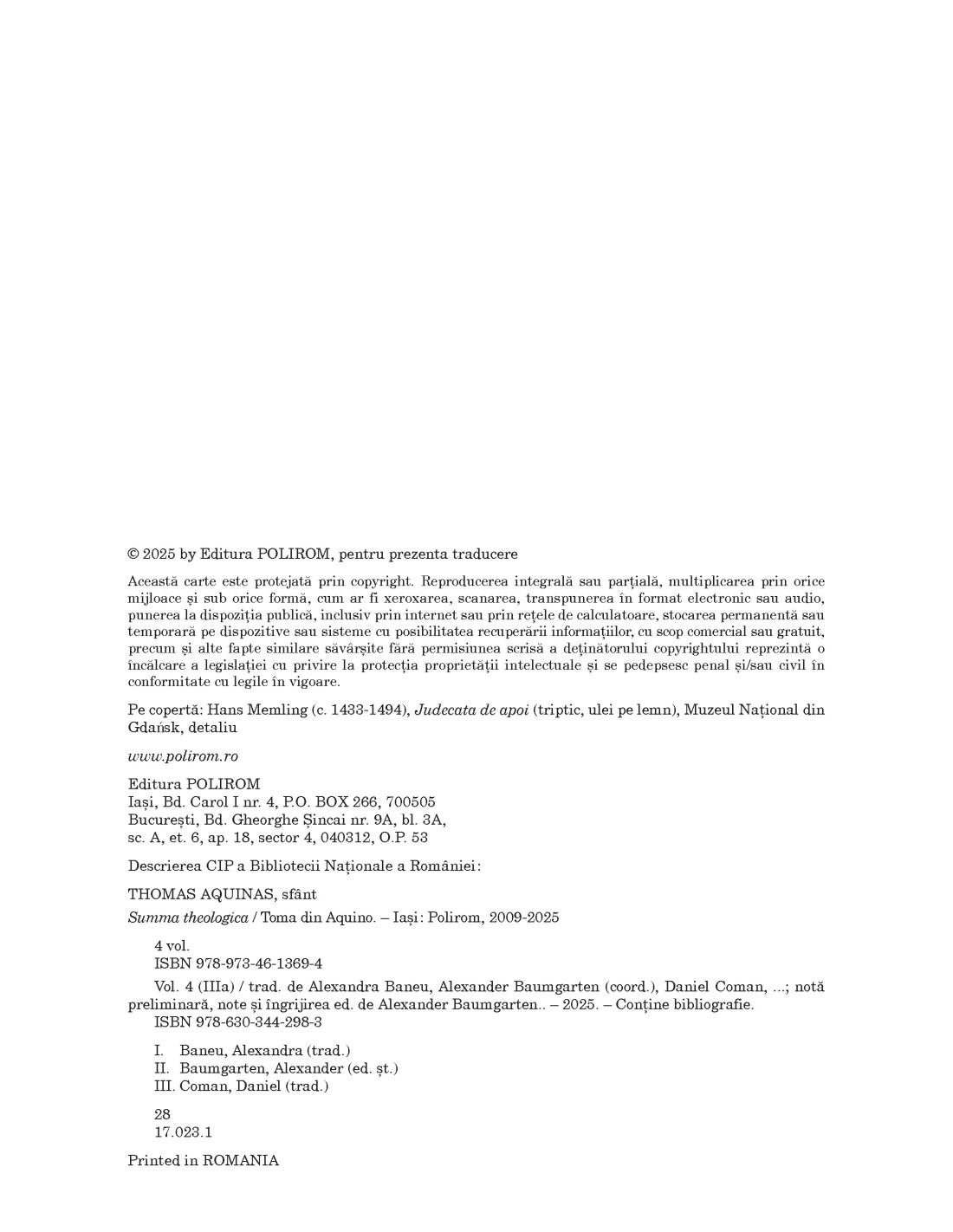 Traducere din limba latină de Alexandra Băneu, Alexander Baumgarten (coord.), Daniel Coman, Lavinia Grijac, Emanuel Grosu, Vlad Ile, Florina Ion