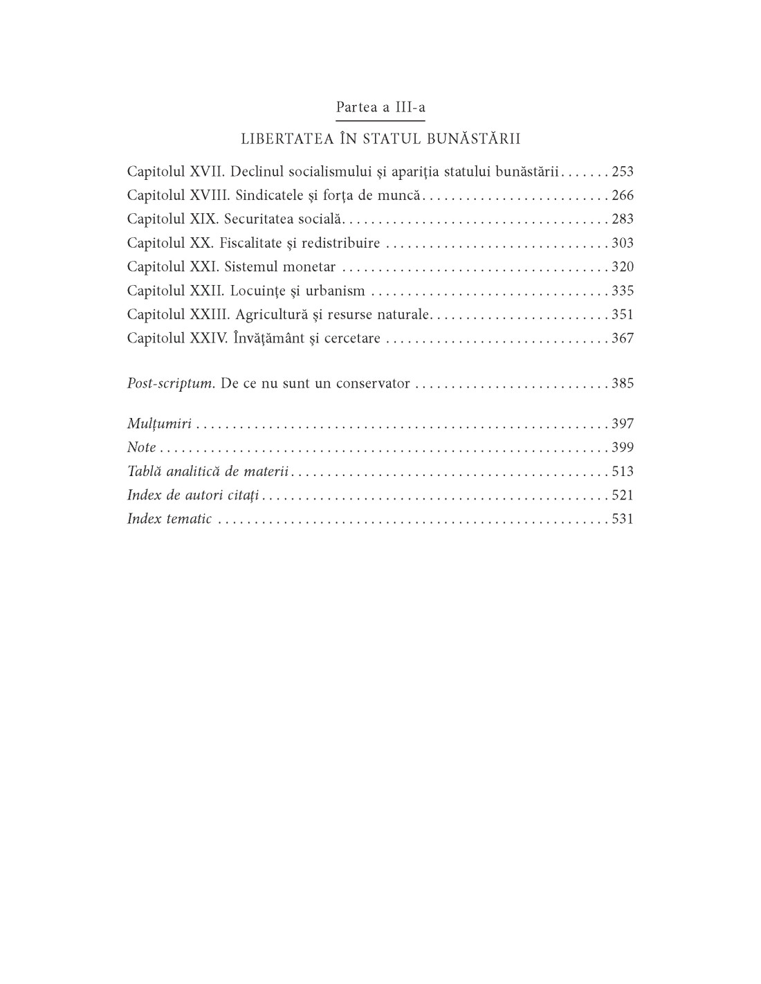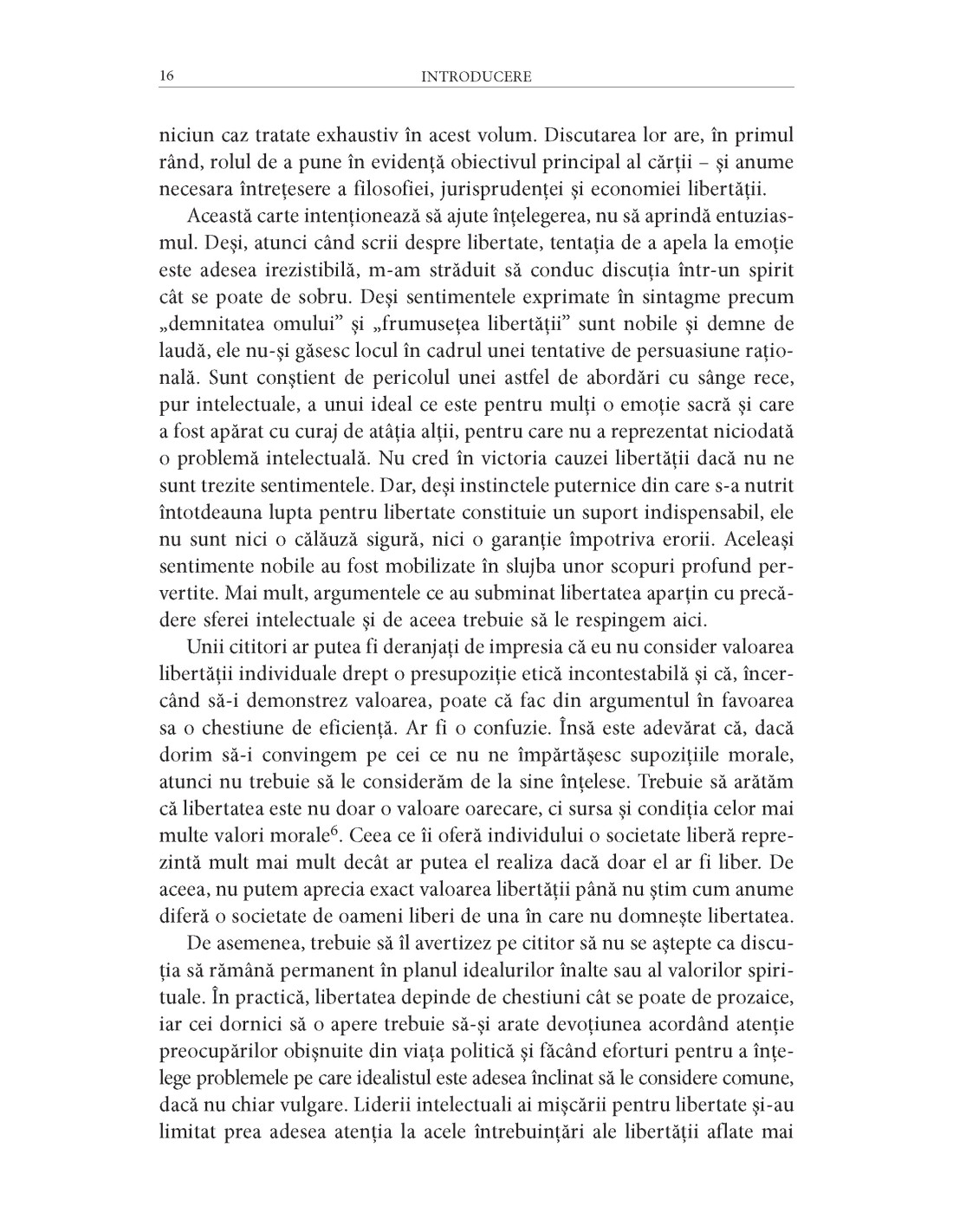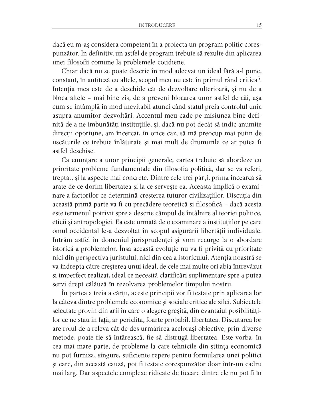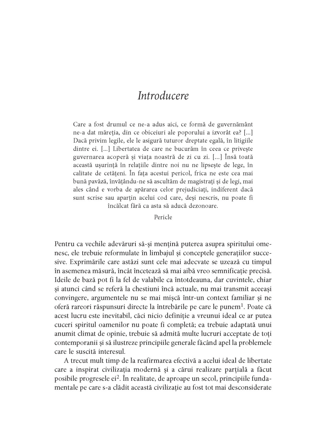 Lectura Constituţiei libertăţii este astăzi o experienţă intelectuală la fel de captivantă ca în 1960, anul în care a fost publicat prima dată volumul, sau ca în 1990, când viziunea lui F.A. Hayek părea a fi una dintre marile surse de inspiraţie ale ordinii postcomuniste. Vechile adevăruri, ne aminteşte autorul, trebuie reafirmate mereu pentru a fi înţelese de noile generaţii. Tocmai de aceea pledoaria sa pentru libertate ca izvor al marilor realizări ale omenirii nu şi-a pierdut actualitatea: ea poate să-l convingă şi să-l inspire şi pe cititorul erei digitale. Pentru Hayek, libertatea – înţeleasă ca absenţă a coerciţiei arbitrare exercitate de alţi oameni – reprezintă temelia progresului civilizaţiei. Ea se sprijină pe un ansamblu de instituţii formate lent şi inegal de-a lungul timpului, dar care s-au dovedit a fi capabile să limiteze slăbiciunile oamenilor şi să le valorifice virtuţile. Menţinerea acestei ordini depinde însă de o cultură politică favorabilă, de cetăţeni capabili să reziste atât asalturilor adversarilor declaraţi ai libertăţii, cât şi intervenţiilor bine intenţionate, dar adesea nocive ale statului. Astfel de ingerinţe sunt, prin natura lor, coercitive – iar tentaţiile de a le accepta sunt astăzi la fel de puternice ca în urmă cu şase sau şapte decenii. Economist laureat al Premiului Nobel, autor al unor studii de filosofia ştiinţei şi filosofie politică, F.A. Hayek a fost una dintre vocile cele mai influente care ne-au avertizat că o civilizaţie liberă trebuie apărată, oferindu-ne repere intelectuale ale defensivei.