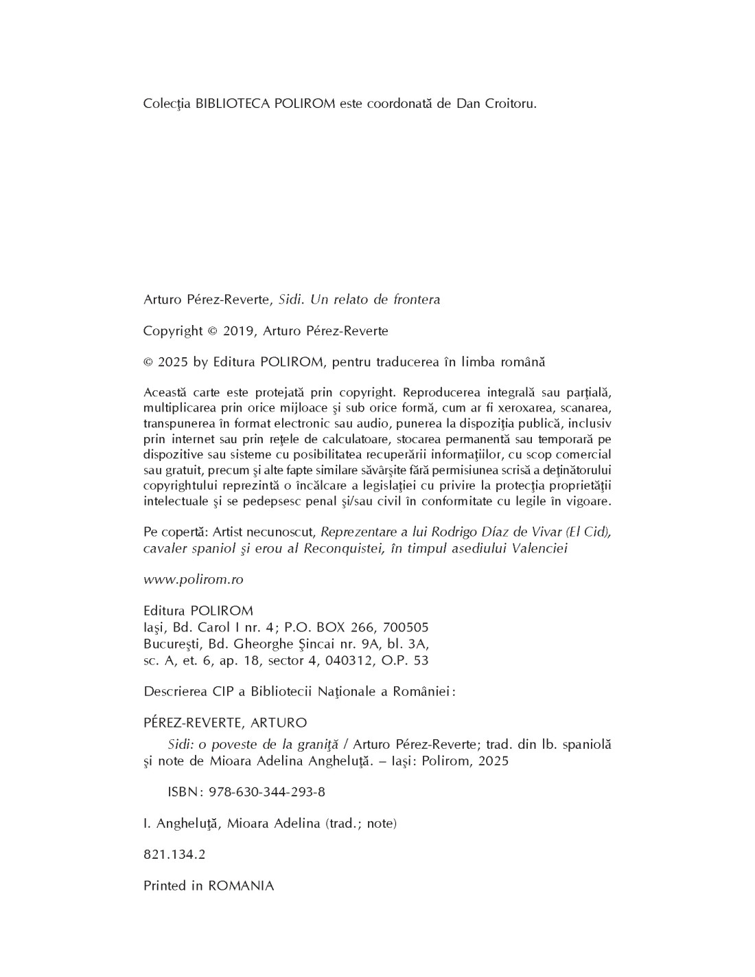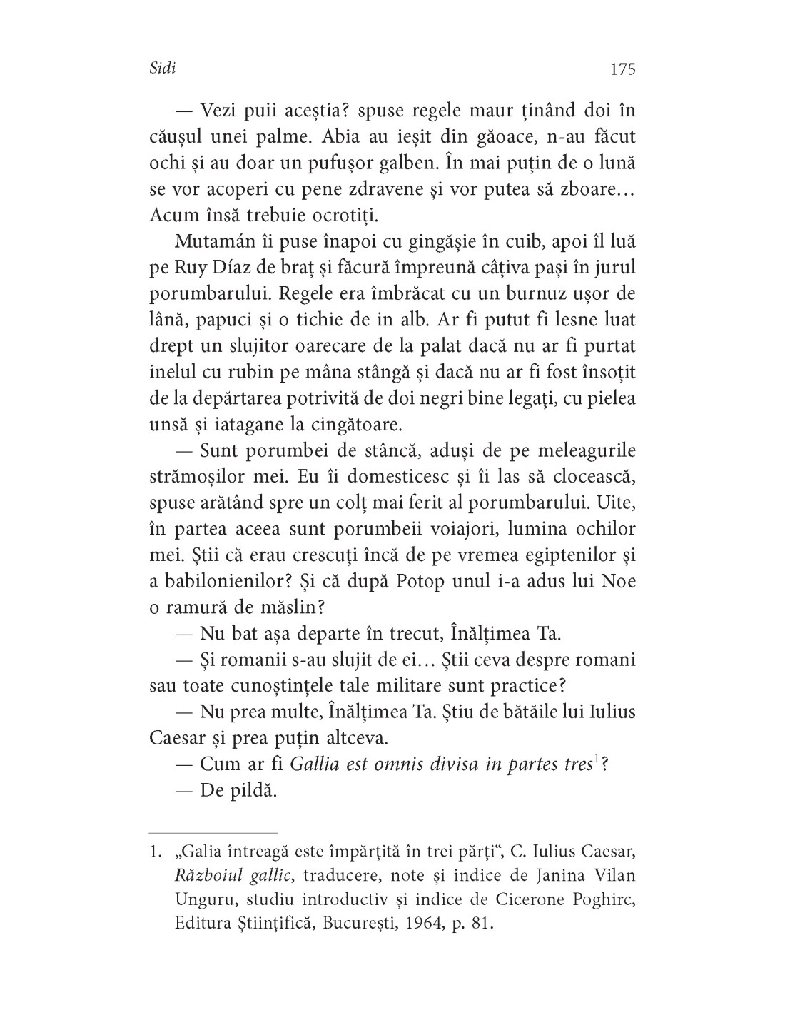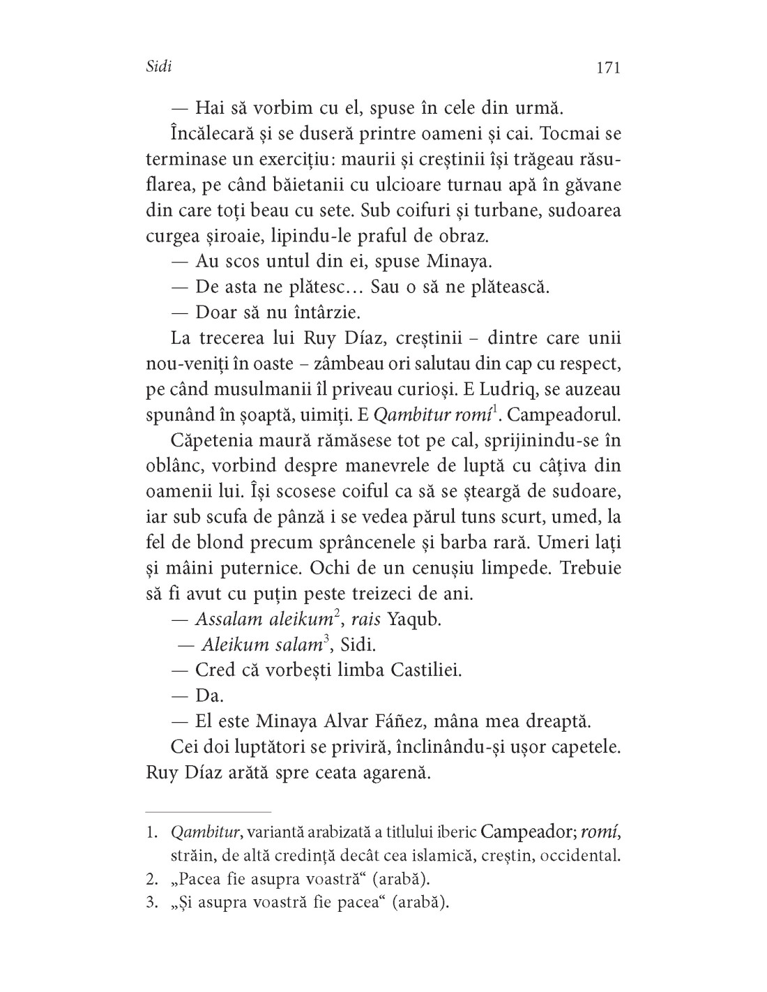 „În romanul Sidi. O poveste de la graniţă am contopit, cu libertate scriitoricească, istoria, legenda şi imaginaţia. Sunt mulţi Ruy Díaz în tradiţia spaniolă, iar acesta este al meu.” (Arturo Pérez-Reverte)