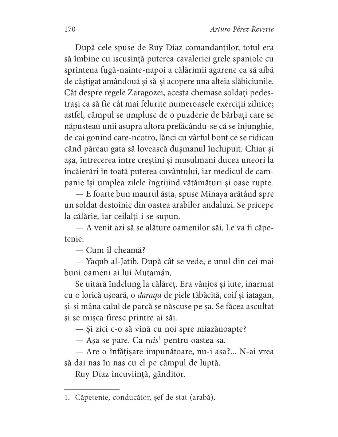 „Astăzi, când puţini tineri au citit Cântecul Cidului – sau chiar niciunul –, romanul lui Pérez-Reverte poate să le trezească interesul pentru acest personaj. Şi pentru istoria acestei ţări.” (El Correo Espańol)