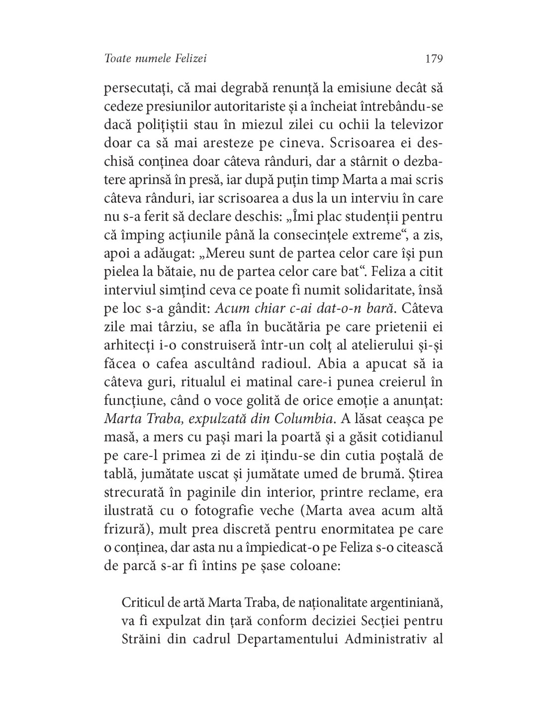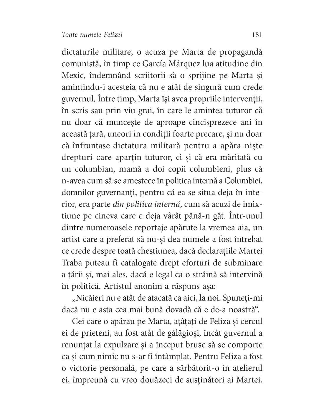 „Realitatea, ficţiunea, o imaginaţie iscoditoare şi un mare talent de povestitor se contopesc în acest minunat roman biografic ce scoate la lumină multă frumuseţe, durere şi tragedie. Toate numele Felizei nu e doar o nouă operă valoroasă din palmaresul deja impresionant al lui Vásquez, ci şi o nouă performanţă ce-i confirmă autorului columbian poziţia în rândul talentelor de marcă ale Americii Latine contemporane.” (World Literature Today)