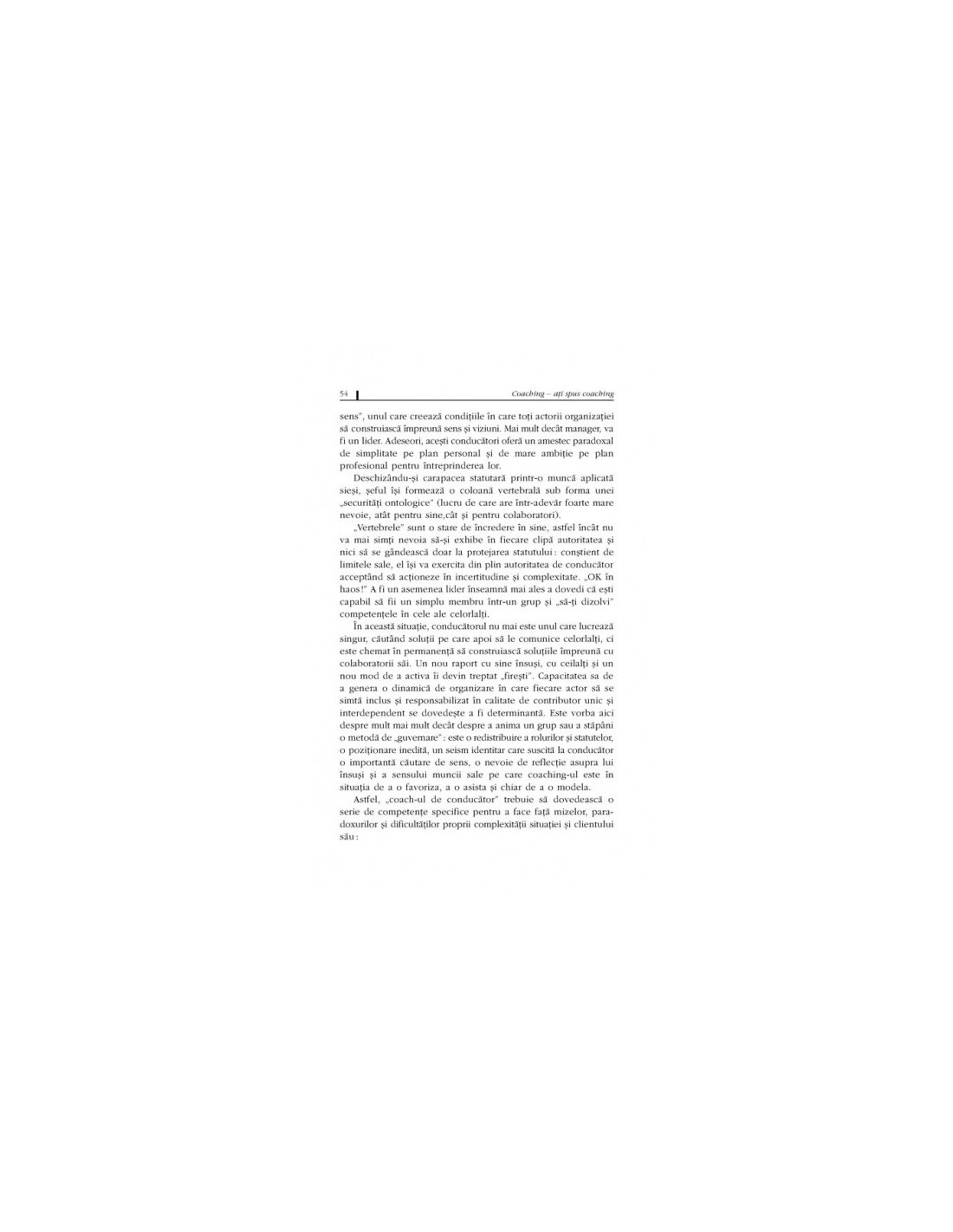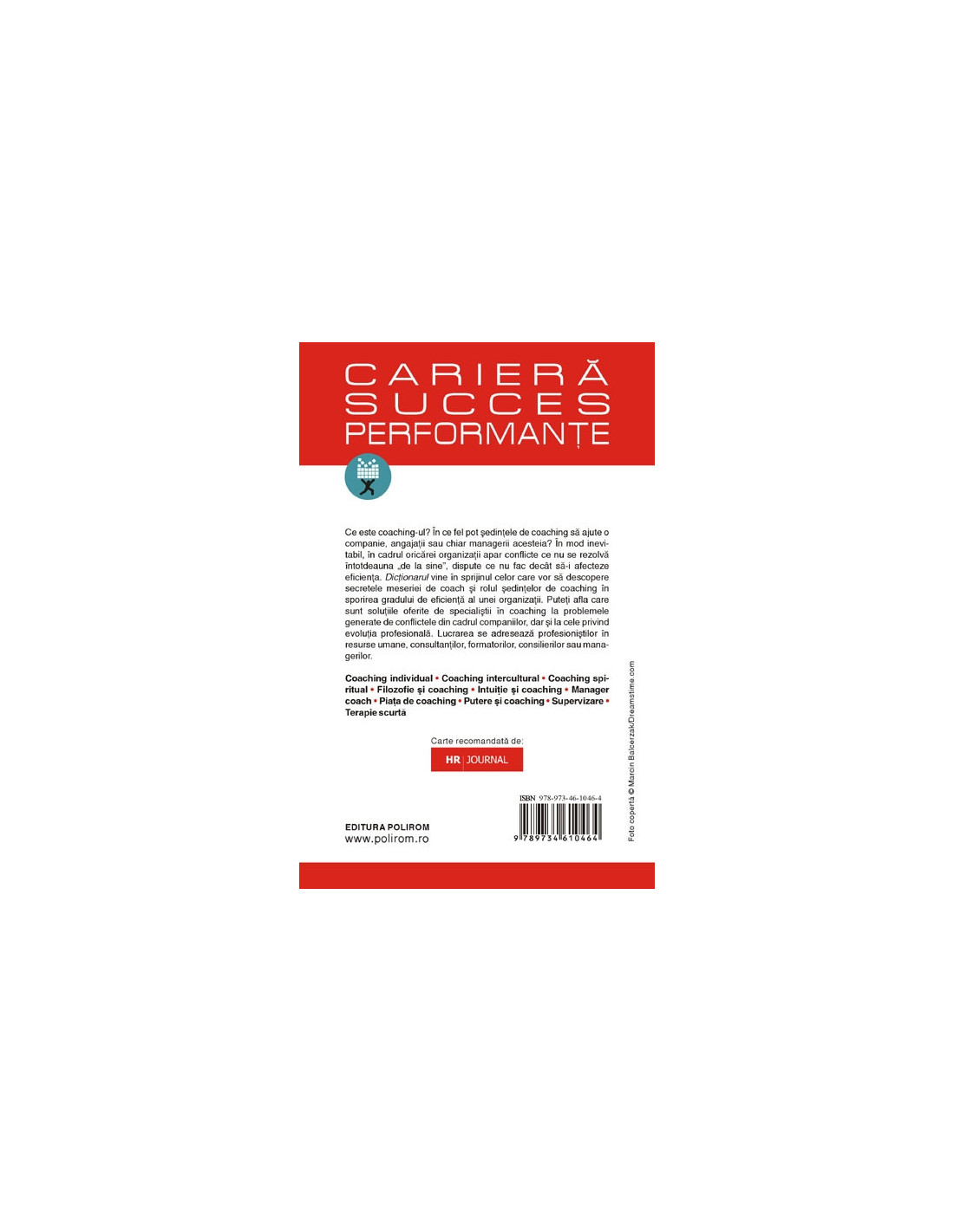 Dictionarul de coaching este un volum plin de informatii la fel de util pentru profesionistii domeniului, cit si pentru debutanti. Un volum deopotriva practic si stiintific. Daca vreti sa stiti TOTUL despre coaching probabil ca nu veti reusi doar prin acest singur volum. Insa ceea ce va pot asigura este ca veti afla FOARTE MULTE despre adest domeniu prin intermediul Dictionarului..., probabil mai multe decit din orice alta carte despre coaching publicata pina acum in Romania. (Ion-Ovidiu Panisoara)
