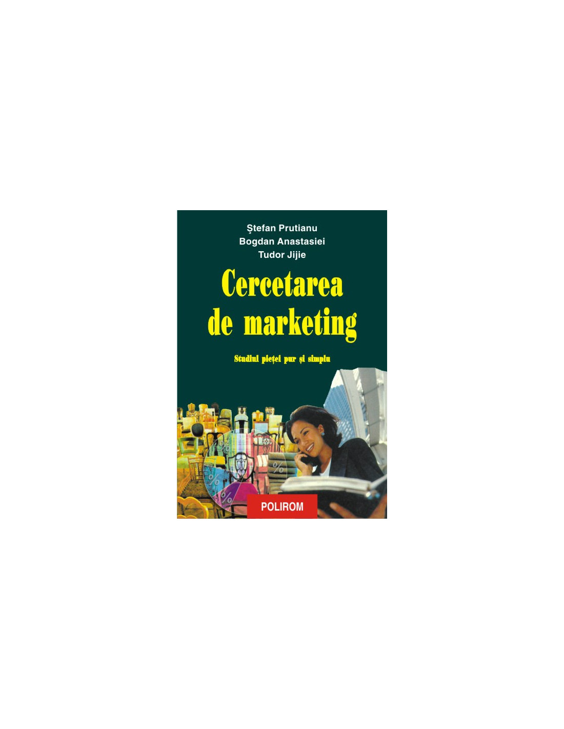 Autori: Ștefan Prutianu , Bogdan Anastasiei , Tudor JijieIntr-o lume in care nici un fel de firma, fie ea de stat sau privata, nu poate exista fara un departament de marketing viabil, cartea de fata ne ofera toate principiile, toate etapele dezvoltarii si reusitei unui astfel de departament. In linii strict generale, ea intereseaza pe toti practicienii marketingului. Indiferent de pozitia lor, de la operatorul de interviu si pina la managerul de proiect sau companie, fiecare practician poate gasi o solutie la problema sa. In special, lucrarea isi va dovedi eficienta pentru viitorii cercetatori si analisti de piata, astazi inca elevi si studenti, care studiaza economia si administrarea afacerilor, marketingul, managementul, comertul, turismul, bancile si bursele, informatica economica, psihologia, sociologia, comunicarea.