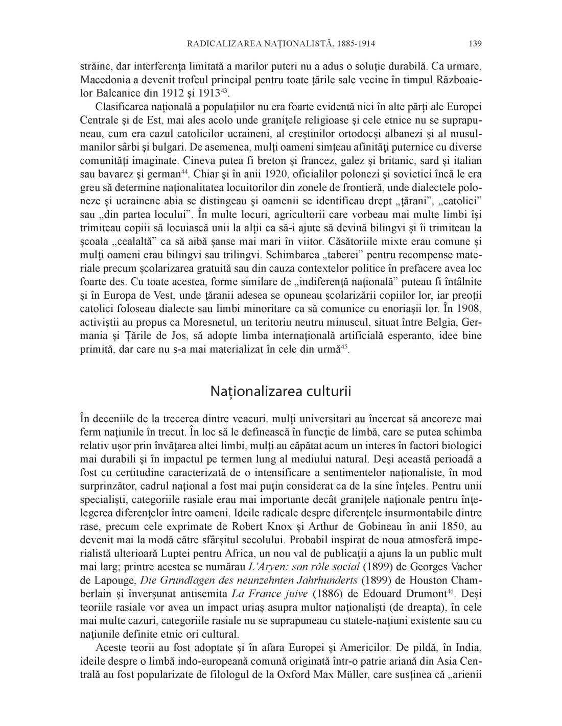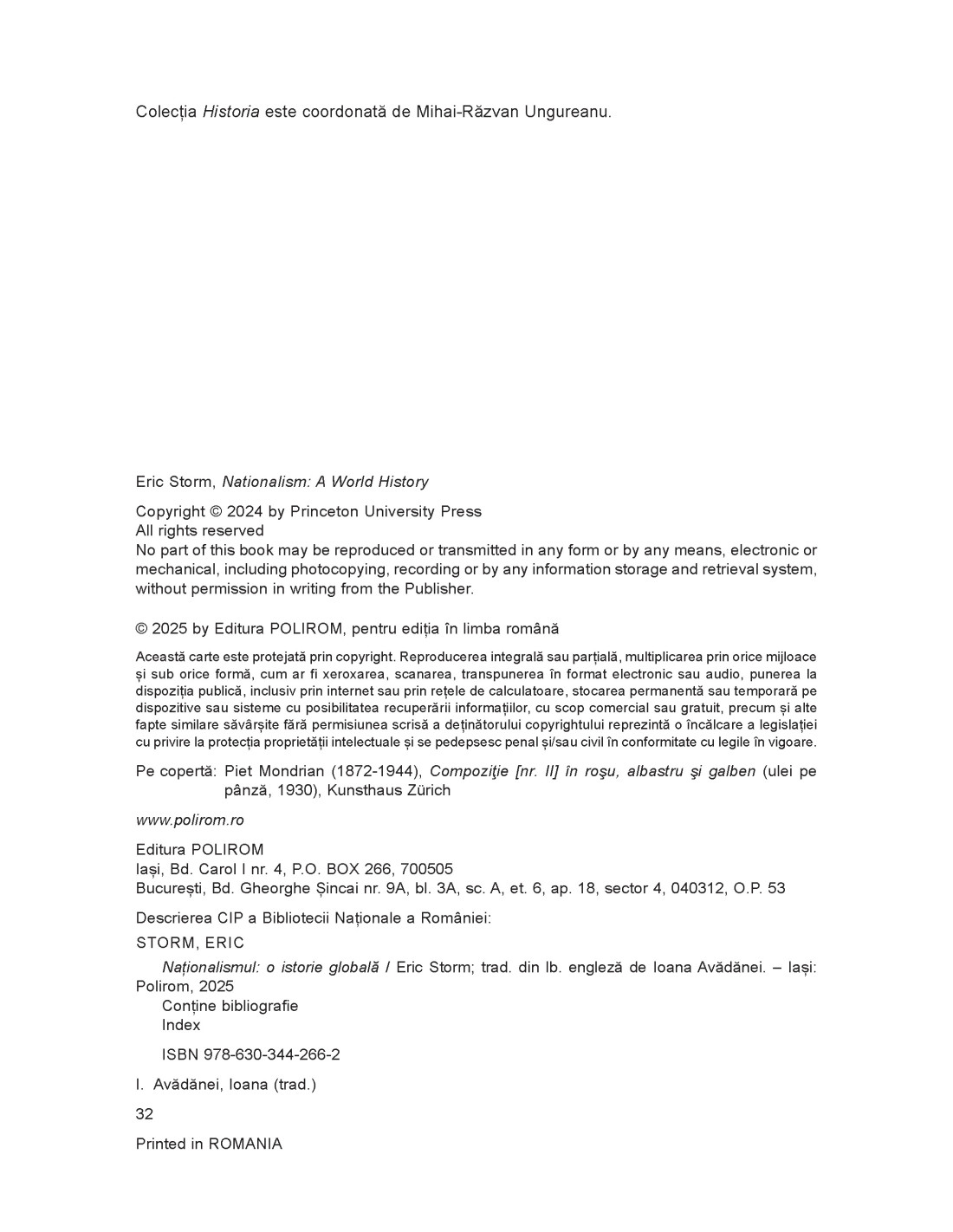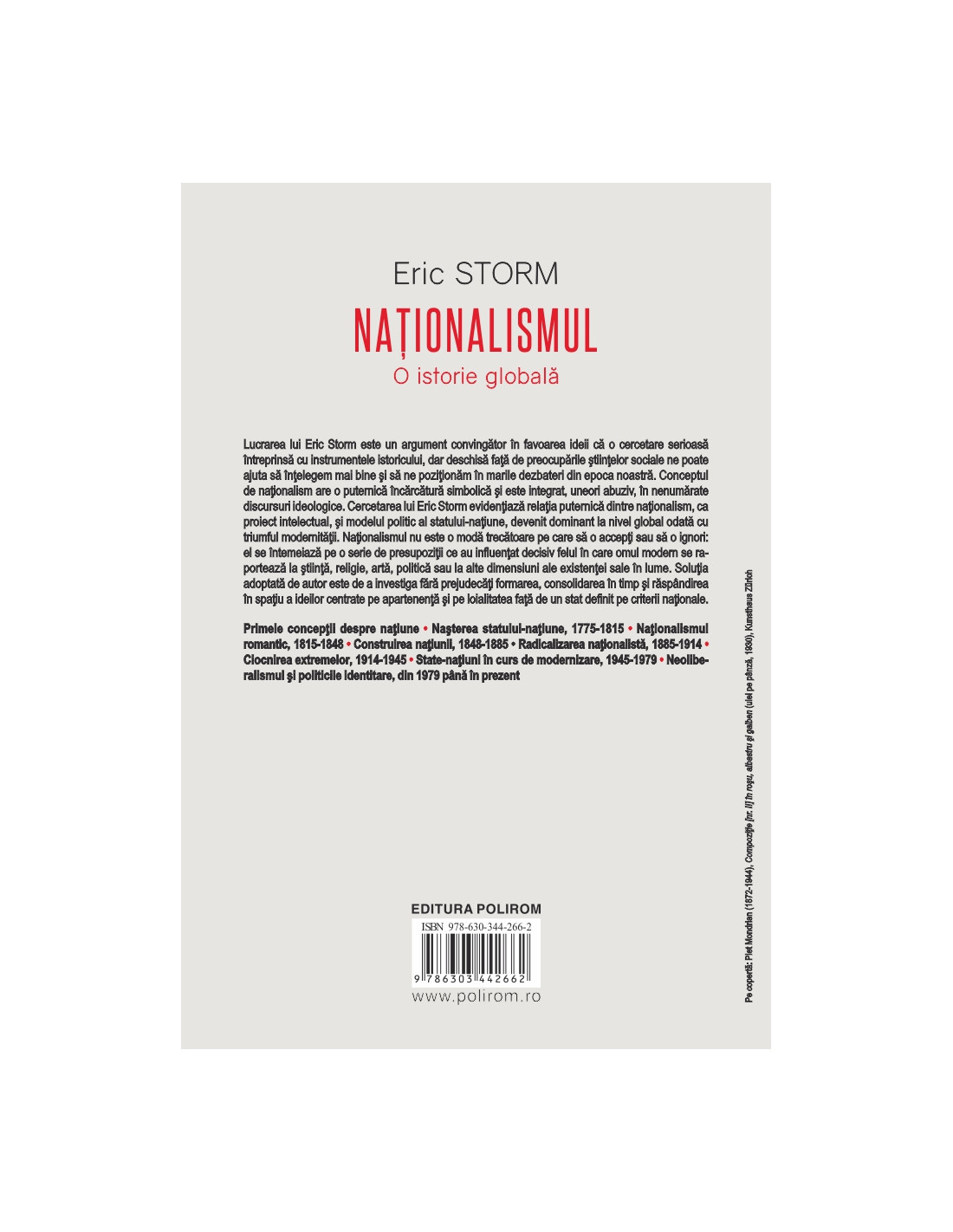 Lucrarea lui Eric Storm este un argument convingător în favoarea ideii că o cercetare serioasă întreprinsă cu instrumentele istoricului, dar deschisă faţă de preocupările ştiinţelor sociale ne poate ajuta să înţelegem mai bine şi să ne poziţionăm în marile dezbateri din epoca noastră. Conceptul de naţionalism are o puternică încărcătură simbolică şi este integrat, uneori abuziv, în nenumărate discursuri ideologice. Cercetarea lui Eric Storm evidenţiază relaţia puternică dintre naţionalism, ca proiect intelectual, şi modelul politic al statului-naţiune, devenit dominant la nivel global odată cu triumful modernităţii. Naţionalismul nu este o modă trecătoare pe care să o accepţi sau să o ignori: el se întemeiază pe o serie de presupoziţii ce au influenţat decisiv felul în care omul modern se ra-portează la ştiinţă, religie, artă, politică sau la alte dimensiuni ale existenţei sale în lume. Soluţia adoptată de autor este de a investiga fără prejudecăţi formarea, consolidarea în timp şi răspândirea în spaţiu a ideilor centrate pe apartenenţă şi pe loialitatea faţă de un stat definit pe criterii naţionale.