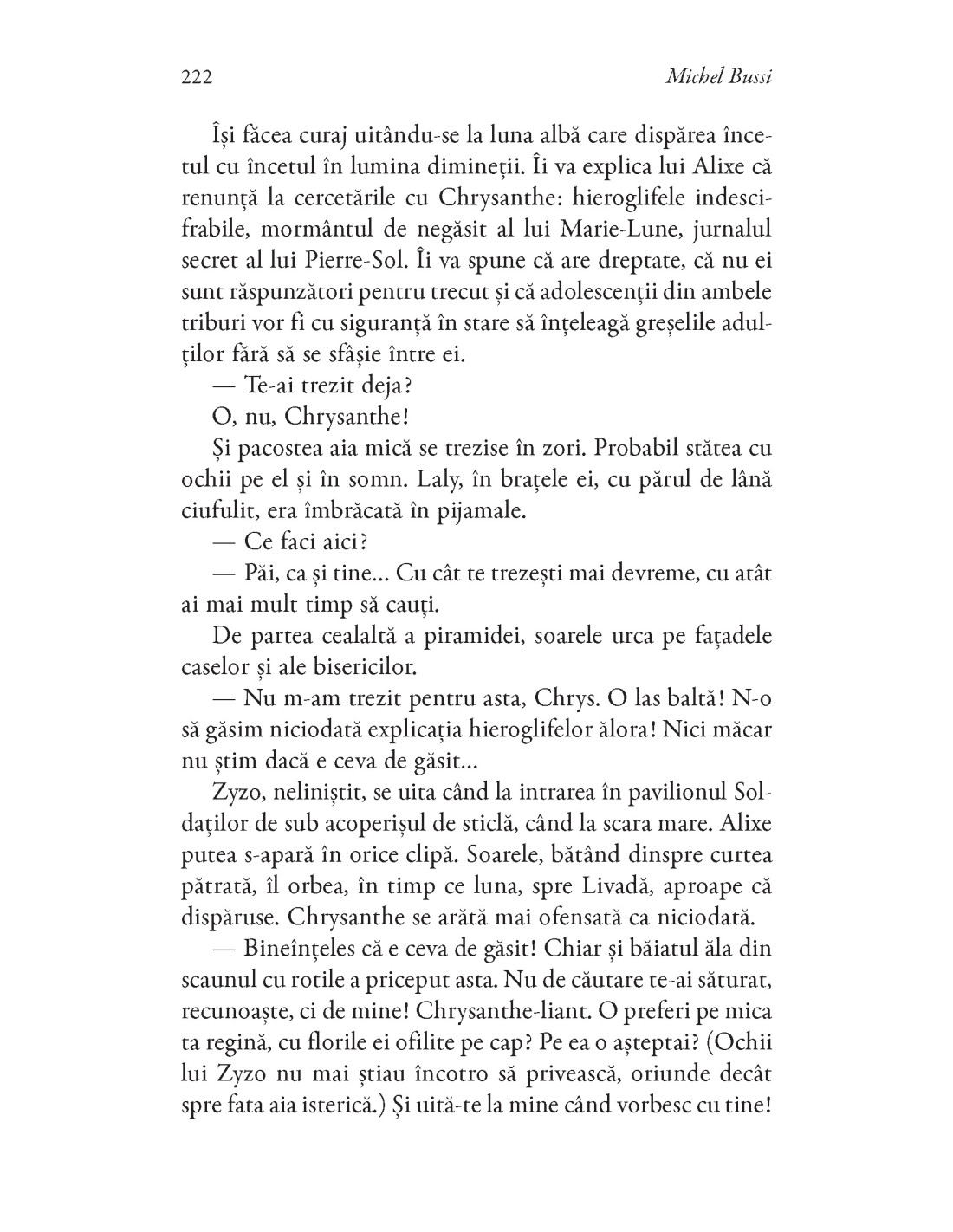 Michel BUSSI (n. 1965) este unul dintre cei mai citiți autori francezi contemporani, operele sale fiind traduse în peste 35 de limbi. De formație geograf, specializat în geopolitică, mult timp profesor la Universitatea din Rouen, a început să scrie în anii 1990, dar a publicat primul roman, Code Lupin, abia în 2006, acesta atingând repede cifra record de nouă ediții. I-au urmat alte titluri: Omaha Crimes (2007), Mourir sur Seine (2008), Sang famille (2009), Nymphéas noirs (2011), ultimul fiind cel mai premiat roman polițist francez în 2011. Următorul succes, Un avion sans elle (2012), l-a propulsat printre cei mai reputați autori contemporani de romane polițiste, dovadă cele peste 15 distincții literare obținute, printre care: Prix Maison de la Presse 2012, Prix du Roman populaire 2012, Premiul pentru cel mai bun roman polițist francofon. În 2020 a publicat Au soleil redouté, un omagiu adus Agathei Christie. Multe dintre cărțile sale au fost adaptate pentru televiziune. Michel Bussi a publicat, de asemenea, povestiri, lucrări de non-ficțiune și mai multe romane pentru copii. La Editura Polirom au apărut romanele: Fetița cu ochi albaștri (2015, 2023), Nuferi negri (2018), Legături de sânge (2020), La soarele neîmblânzit (2022), Nimic nu mi te poate șterge din minte (2024), Cod 612. Cine l-a ucis pe Micul Prinț? (2025) și primul volum din seria pentru copii N.E.O., Căderea soarelui de fier (2023).